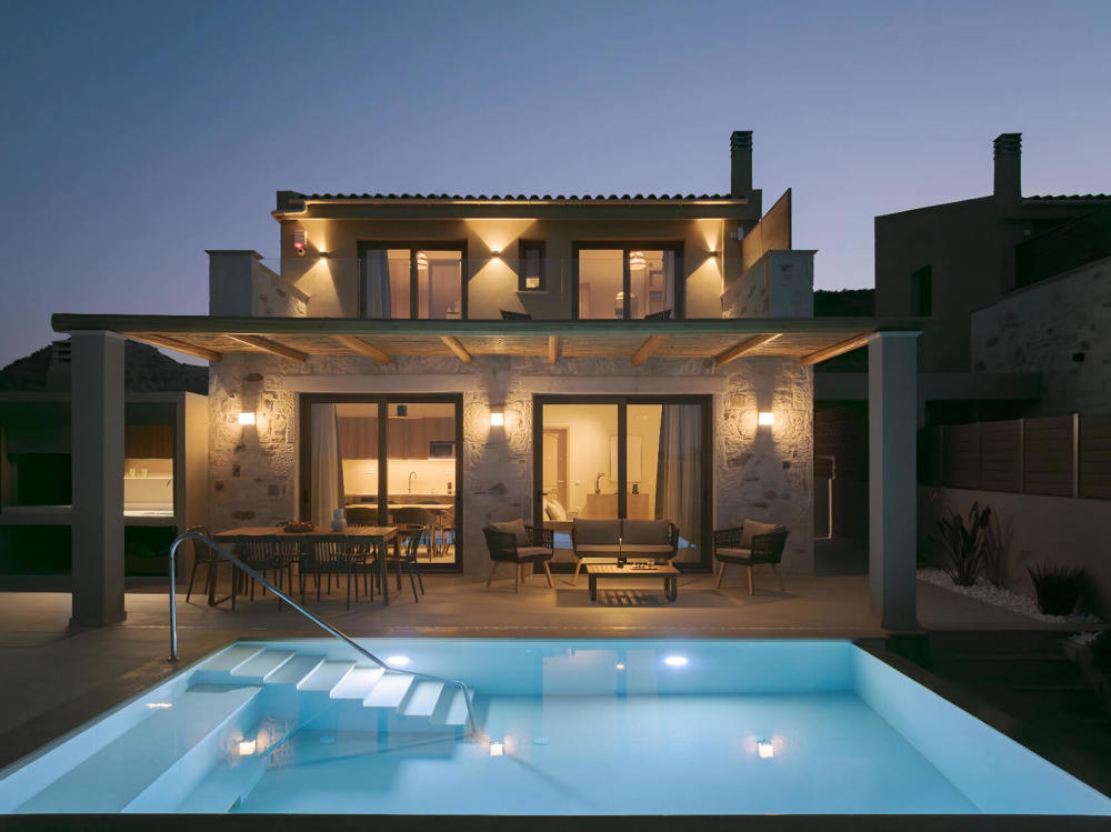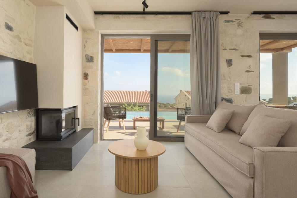 The villa features 2 bathrooms, while its private pool provides moments of relaxation and rejuvenation, surrounded by the lush greenery. Built with stone and natural materials in warm, earthy tones, it creates an atmosphere that perfectly blends with the surrounding nature and its wonderful scents.