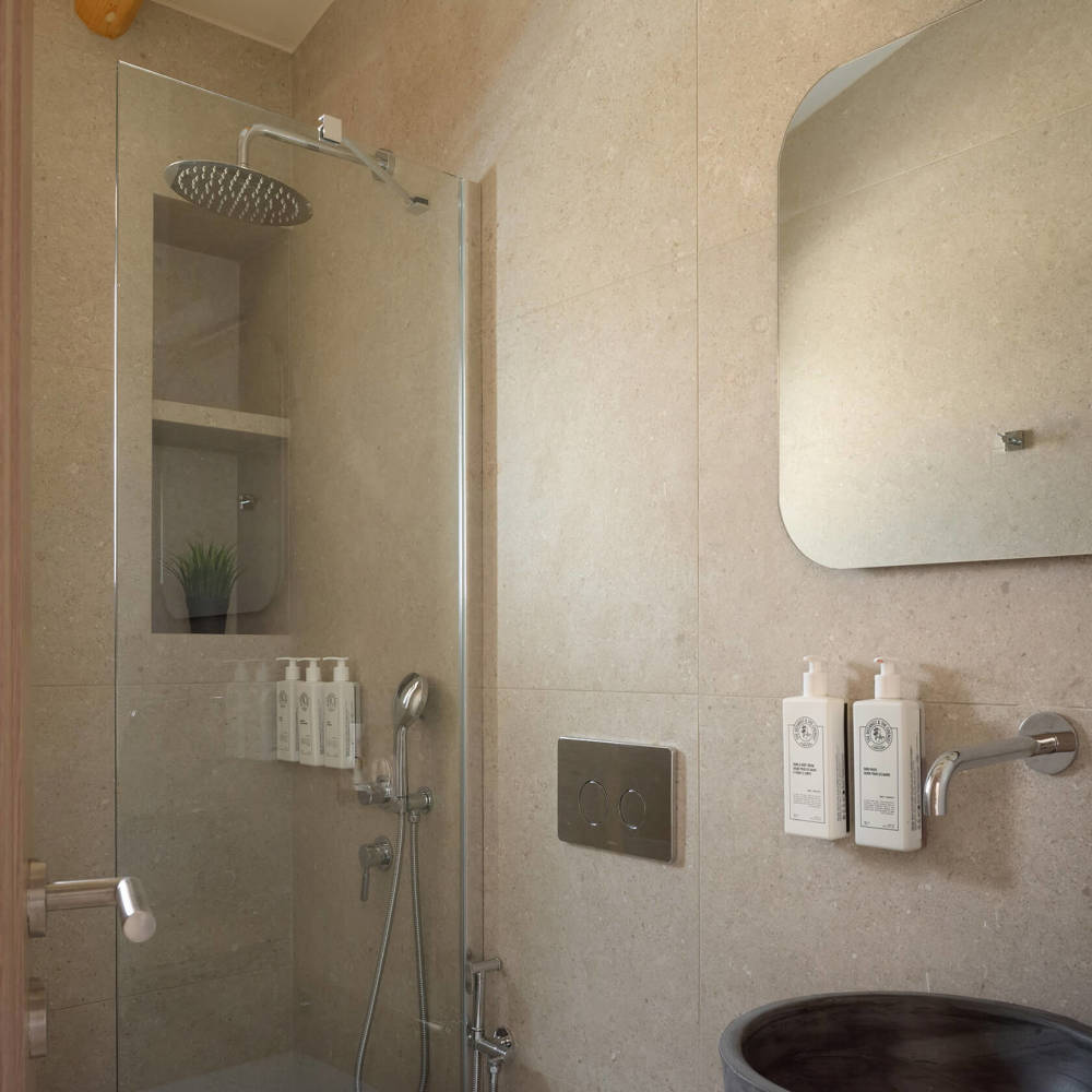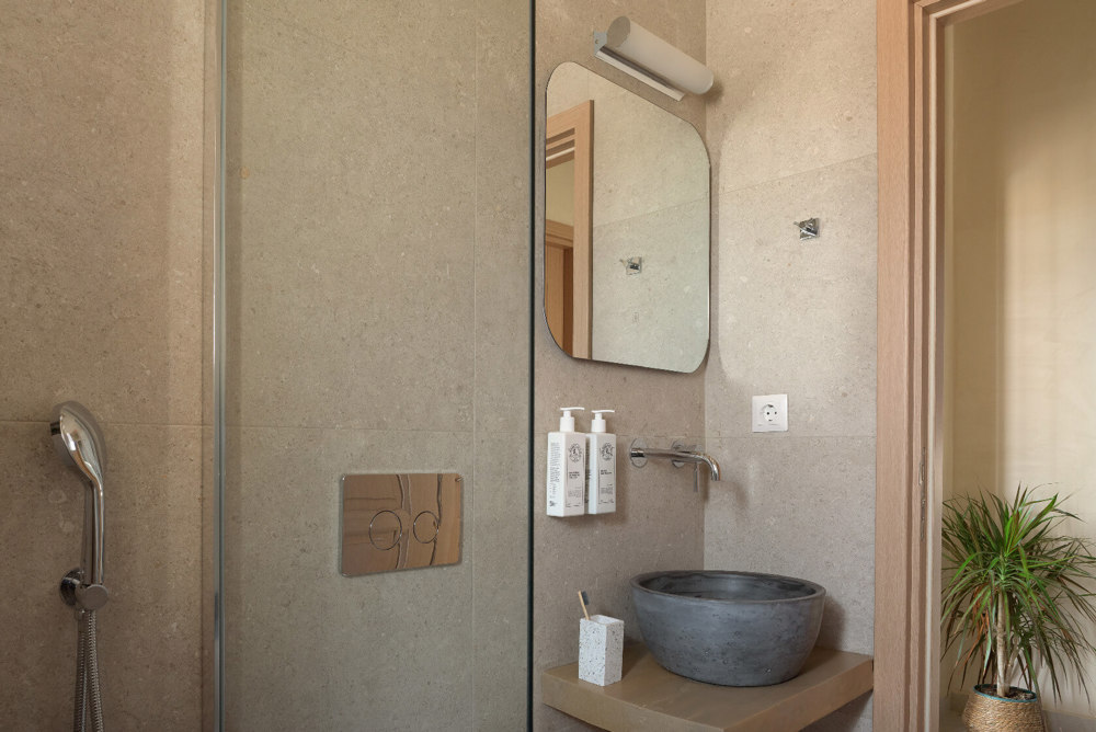 The villa features 2 bathrooms, while its private pool provides moments of relaxation and rejuvenation, surrounded by the lush greenery. Built with stone and natural materials in warm, earthy tones, it creates an atmosphere that perfectly blends with the surrounding nature and its wonderful scents.