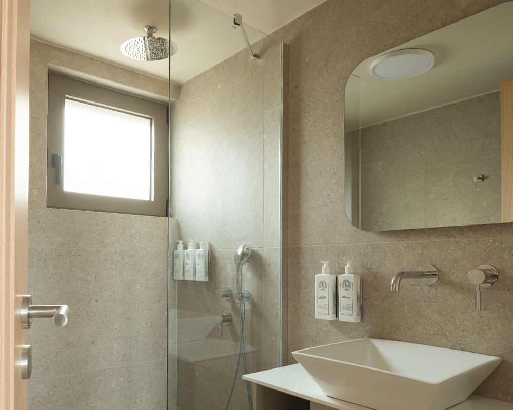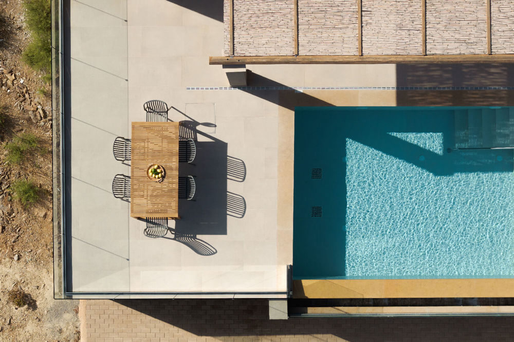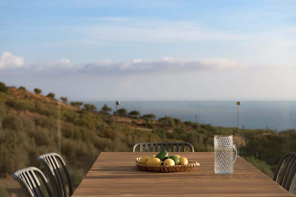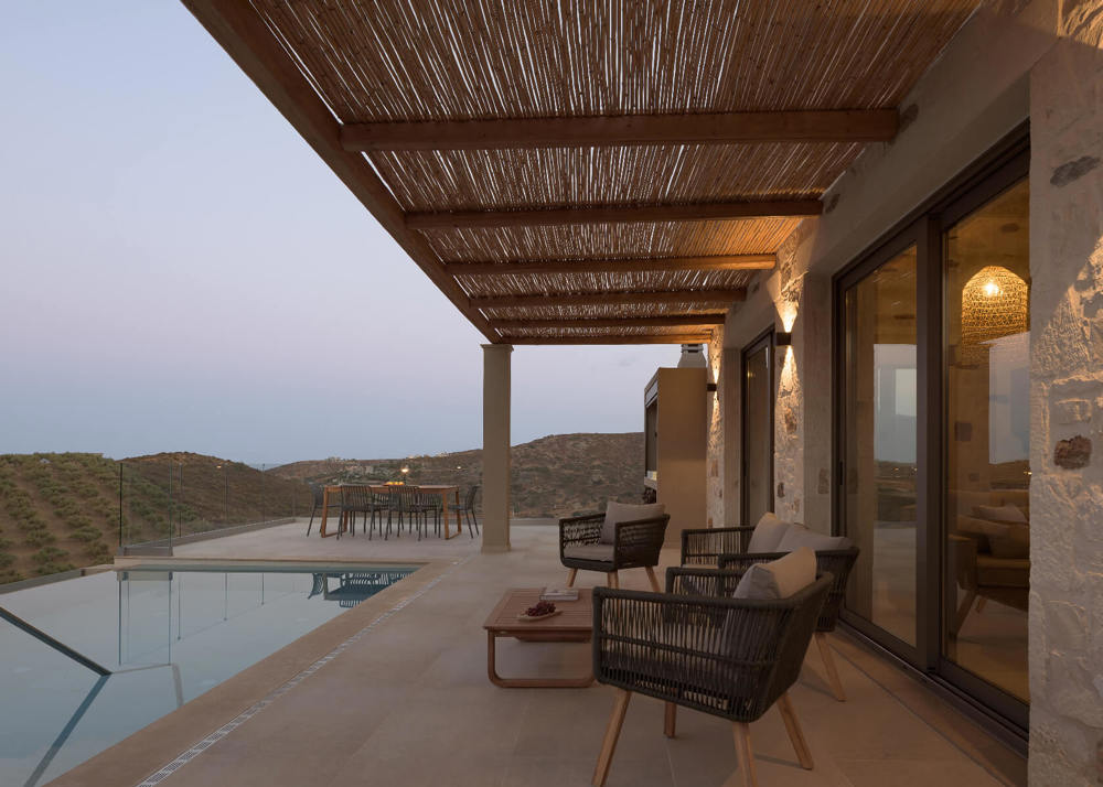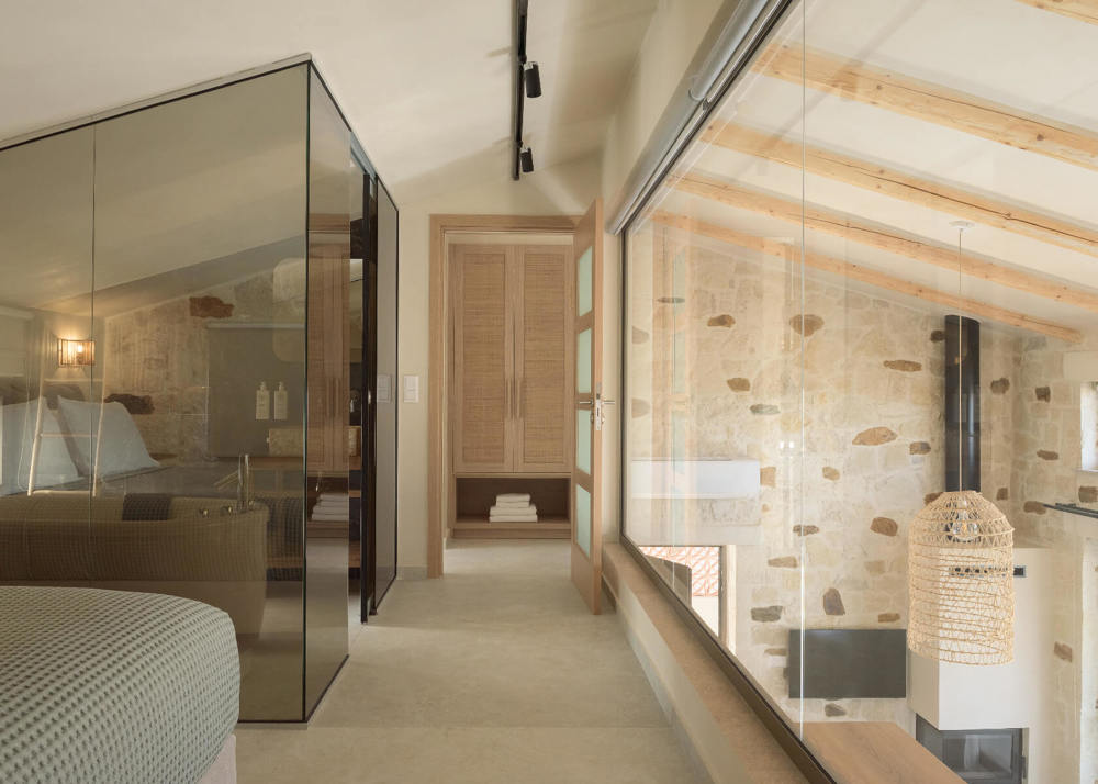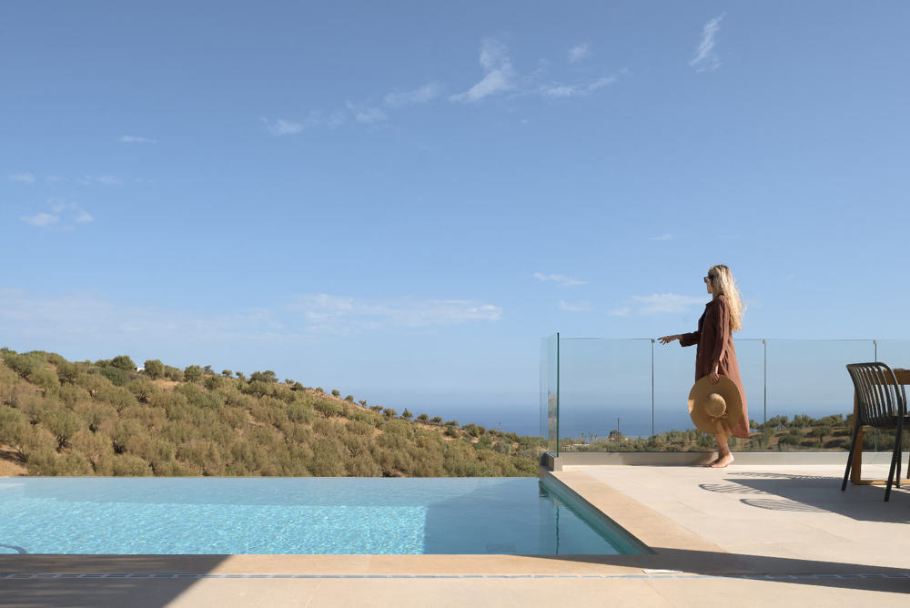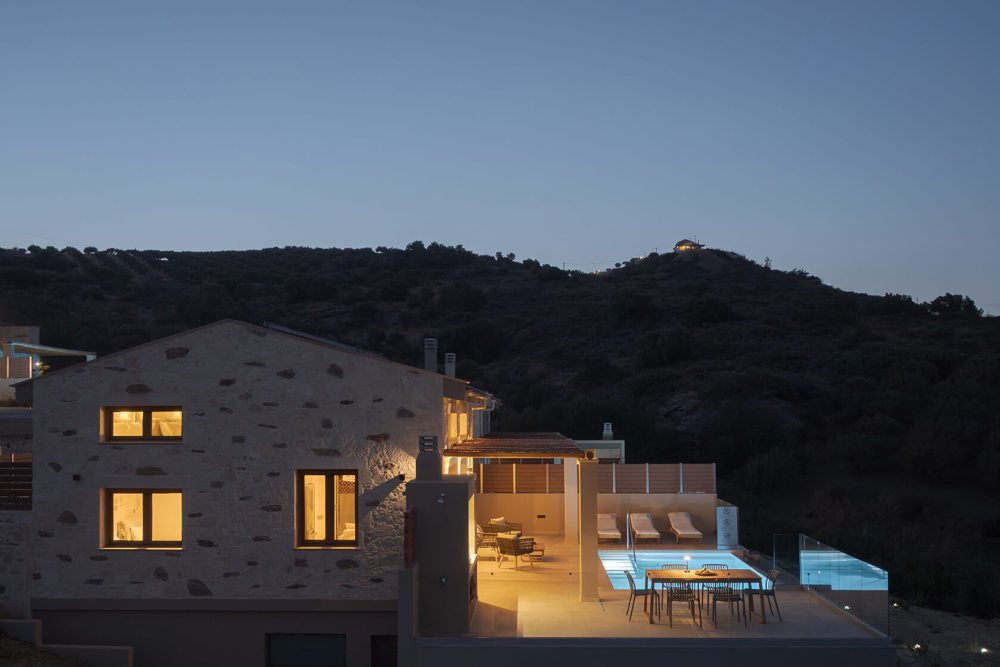 Relax by the private pool, which offers stunning views of both the sea and the mountain, while enjoying the peaceful surroundings of nature. The villa is built with stone and high-quality materials in natural tones, creating a warm atmosphere that harmonizes perfectly with the natural landscape and the delightful scents of nature.